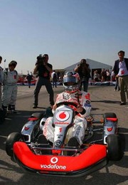 À esquerda: Fernando Alonso participou de uma prova de kart. À direita: Rubens Barrichello (Honda) chegando ao autódromo. |