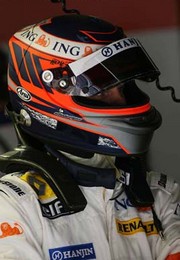 de fora da curva, saiu da pista e caiu para 4º. Foto inferior: Takuma Sato fez uma prova espetacular e no final passou Barrichello e Fisichela para garantir o 1º ponto da Super Aguri. |