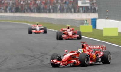 ![]() Pódio: Reação da Ferrari: Kimi Raikkönen vence seguido de Felipe Massa e Lewis Hamilton (8º pódio consecutivo). |