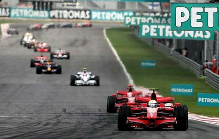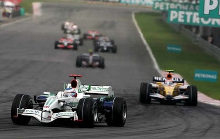 NA LARGADA MASSA "JOGA" SEU CARRO DE ENCONTRO AO DE RAIKKÖNEN DE FORMA A ASSUMIR A LIDERANÇA NA CURVA 1. A SEGUIR VINHA TRULLI E AS BMWs. |