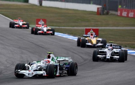 NAS PRIMEIRAS VOLTAS BARRICHELLO ERA O 16º SEGUIDO POR NAKAJIMA (WILLIAMS), PIQUET (RENAULT), ADRIAN SUTIL E GIANCARLO FISICHELLA (FORCE INDIA) |