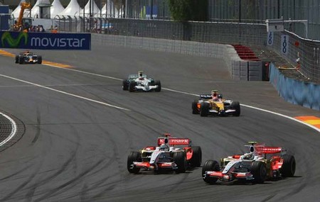 ADRIAN SUTIL E GIANCARLO FISICHELLA BRIGARAM NA PISTA E QUASE FORA DELA. O NOVO CÂMBIO FEZ O CARRO DA FORCE INDIA MELHORAR CONSIDERAVELMENTE. |