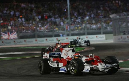 FELIPE MASSA ASSUMIU A LIDERANÇA TRANQUILAMENTE E SE MANTEVE COM MAIS DE 8 SEGUNDOS DE VANTAGEM SOBRE HAMILTON ATÉ O ACIDENTE COM NELSINHO PIQUET. |