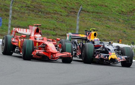 KIMI RAIKKÖNEN E MARK WEBBER DISPUTANDO POSIÇÃO APÓS O PIT STOP DO FINLANDÊS. AO FINAL WEBBER TRAVOU BOA DISPUTA COM FELIPE MASSA TAMBÉM. |