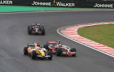 FERNANDO ALONSO, HEIKKI KOVALAINEN E SÉBASTIEN BOURDAIS DISPUTARAM POSIÇÕES DURANTE BASTANTE TEMPO. AO FINAL, O ESPANHOL SE DEU MELHOR. |