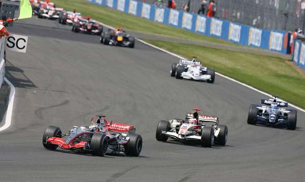 SEGUIDO DE KIMI RAIKKÖNEN, AS DUAS FERRARIS, FISICHELLA E RUBENS BARRICHELLO.